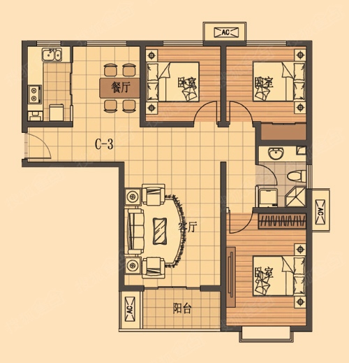 3室2厅1卫-C3三室两厅一卫114.92平米户型