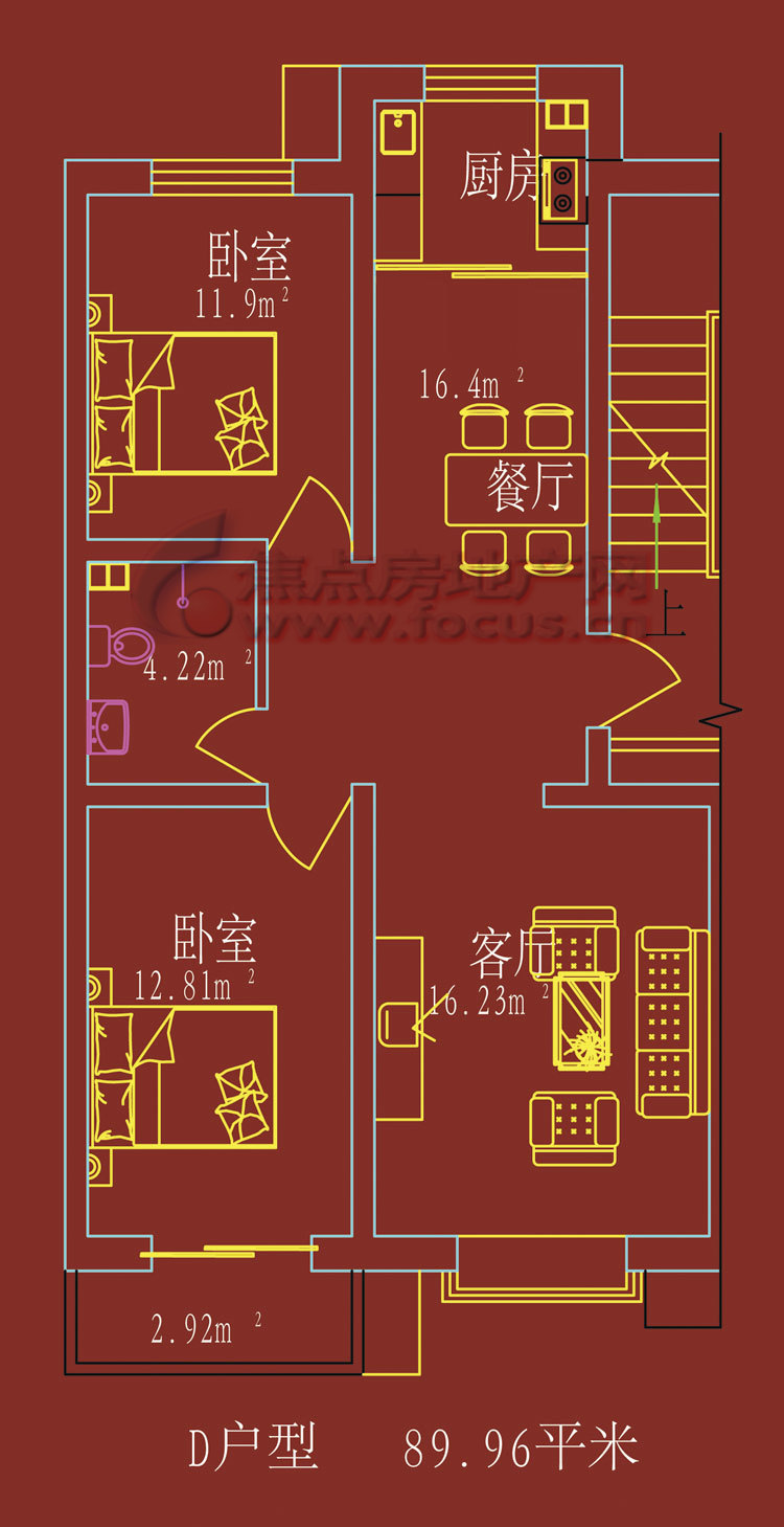 2室2厅1卫-富景华庭D两室两厅一卫89.96平米