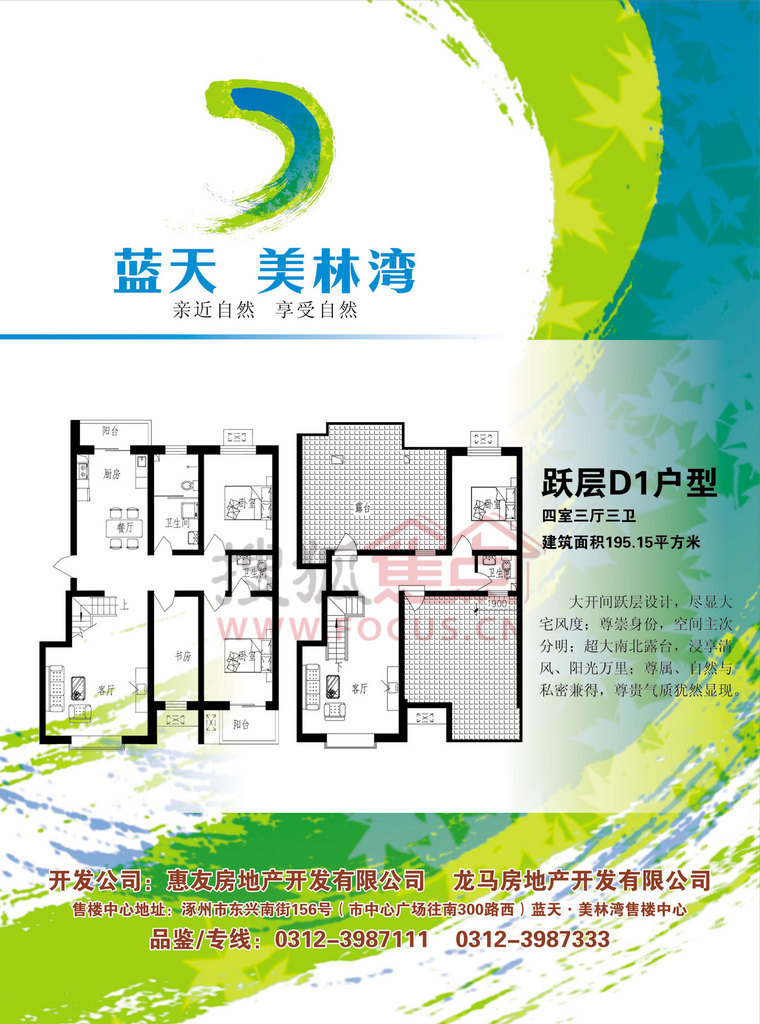 4室3厅3卫-蓝天·美林湾跃层D1四室三厅两三卫195.15平方米