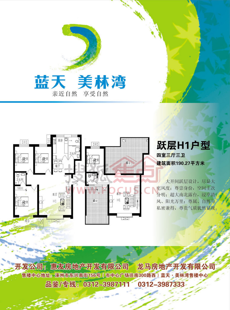 4室3厅3卫-蓝天·美林湾跃层H1四室三厅三卫190.27平方米