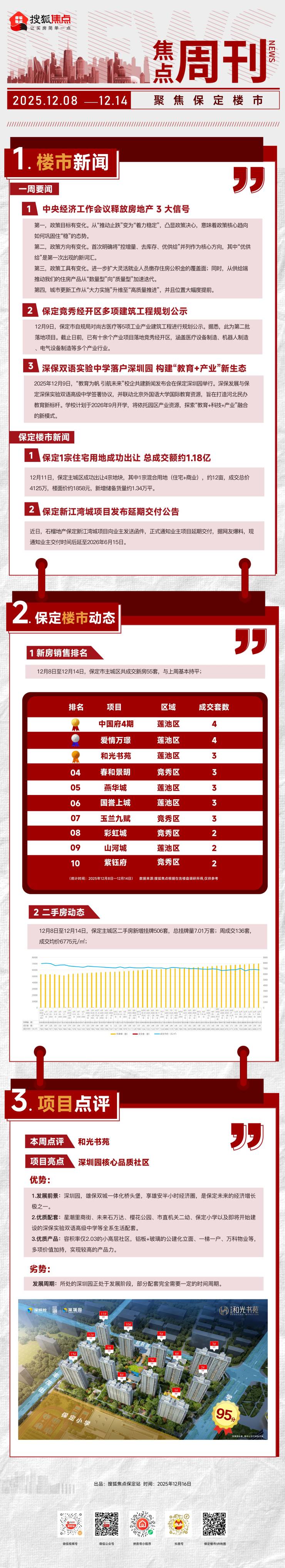 【焦点周刊】保定主城区1宗住宅用地成功出让/上周新房成交55套(12.8—12.14)