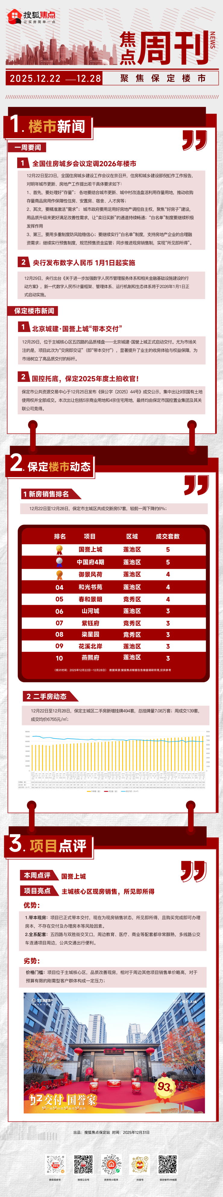 【焦点周刊】住房城乡会议定调2026年楼市/上周新房成交57套(12.22—12.28)