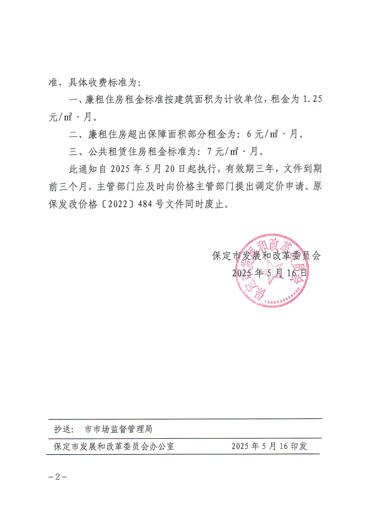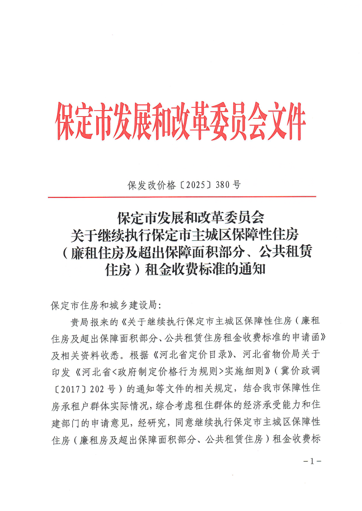 近日,保定市发展和改革委员会发布通知,明确同意继续执行主城区保障性住房(廉租住房及超出保障面积部分、公共租赁住房)租金收费标准,相关标准自2025年5月20日起执行,有效期三年。