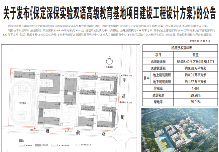2025年11月21日,保定市自然资源和规划局公布最新建设工程规划许可证下发情况,其中,保定深保实验双语高级教育基地项目拉开帷幕,标志着这项备受关注的教育工程即将进入实质性建设阶段。同时也标志着深圳园公共服务配套兑现取得关键进展,是园区完善功能布局与推动教育生态的跃升。