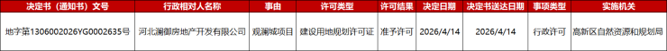 近日,保定国家高新区自然资源和规划局发布建设用地规划信息,河北澜御房地产开发有限公司顺利取得观澜城项目的建设用地规划许可证。2025年5月16日,河北澜御房地产开发有限公司以25300万元摘得该项目地块,成交亩价629.8万元/亩,楼面价3374元/㎡。