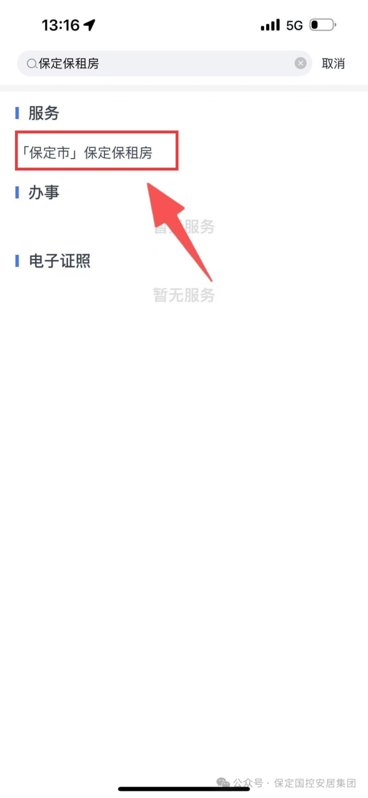 回到首页,搜索并点击“保定保租房”。