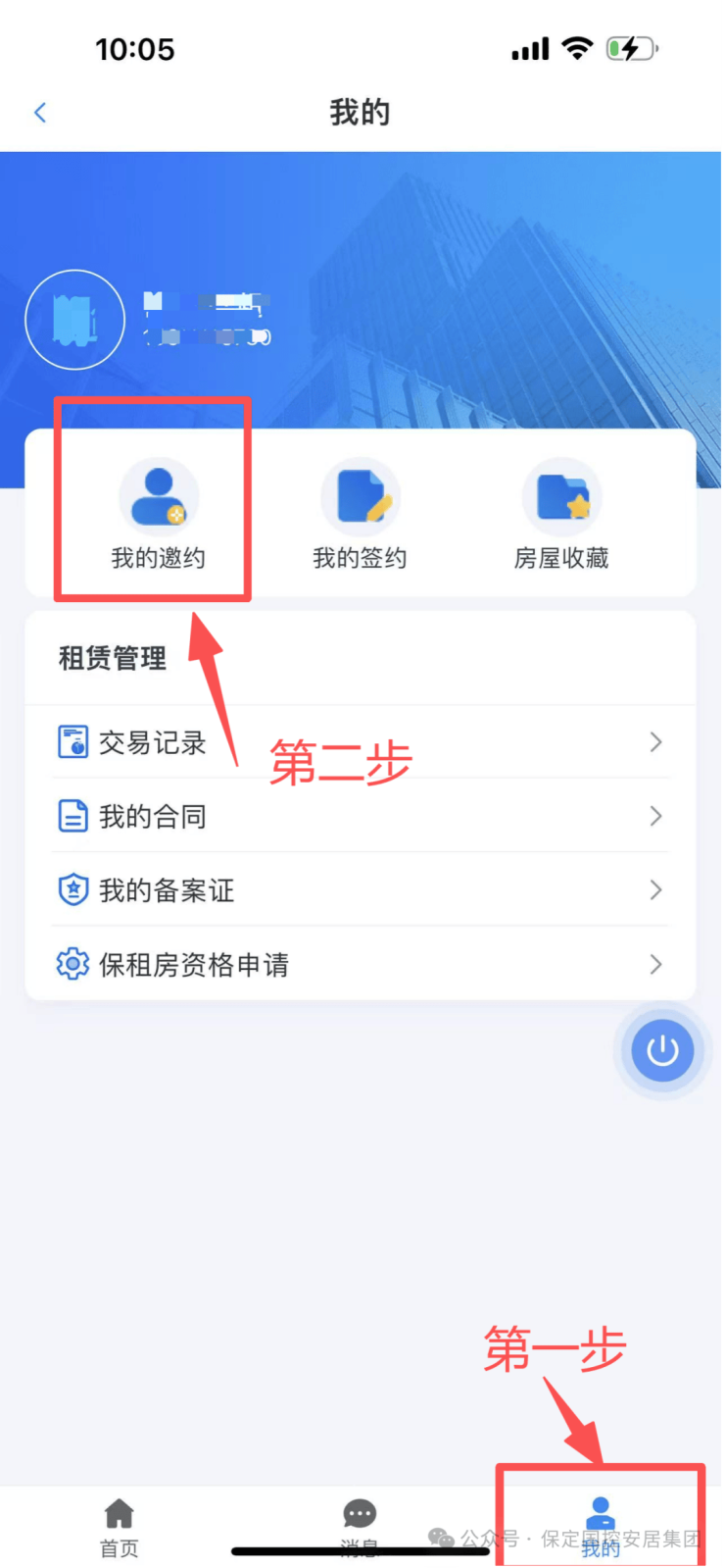 2.可依次点击“我的”→“我的邀约”→“保租房承租邀约” 查看邀约相关信息。