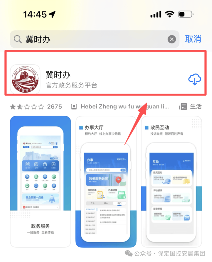 安卓手机:打开应用市场,搜索“冀时办”,下载安装。