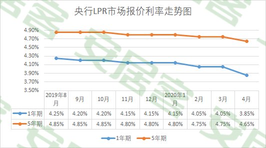 4月20日,中国人民银行授权全国银行间同业拆借中心宣布,2020年4月20日贷款市场报价利率(LPR)为:1年期LPR为3.85%,较3月的4.05%大幅下调20个基点,创下去年8月以来的较大单次降幅,5年期以上LPR为4.65%,较3月的4.75%下降10个基点,同样创下去年8月启动LPR改革以来的较大单次降幅。