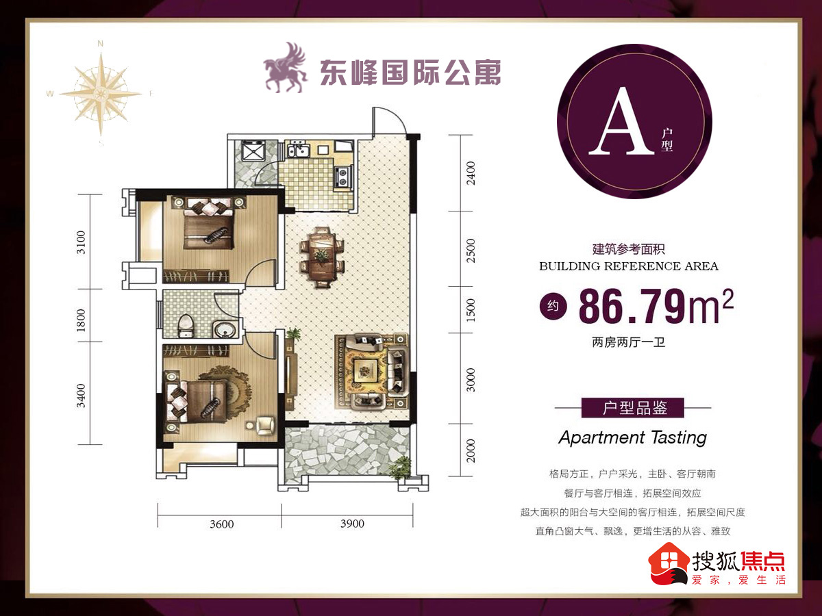 2室2厅1卫-A户型 建面约86平 两室两厅