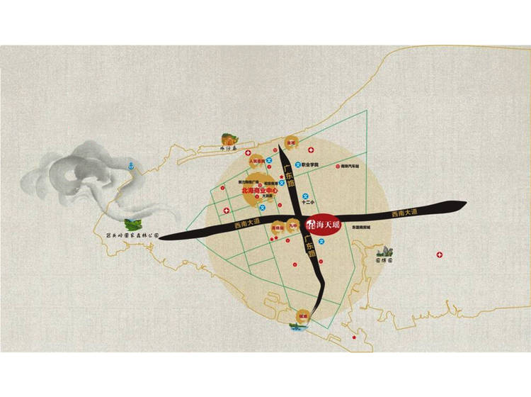 海天瑶位于北海成熟市中心地段:广东路与西南大道交汇处以南,生活圈尽享北海配套:高铁站、第九中学、大润发超市、第二人民医院、银行公交市场更是便捷通达。沿城市黄金主干道广东路即可南北纵线贯通,南达天下滩——银滩,北至北海海鲜美食胜地——外沙岛;沿东西横贯线广西景观大道——西南大道;东至北海园博园,西至北海山海美景南万、冠头岭。南北贯通东西通达,畅享中心优越生活。 海天瑶以“精工建筑精品生活”为开发建设定位,建材精挑细选,建筑精雕细琢。楼幢外立面及公共大堂楼梯过道皆采用东鹏瓷砖贴面,钢筋主材选用柳钢,日立电梯、群升木门、华润水泥、广铝铝材、雨虹防水……用品牌品质筑建精工社区。社区设计上,以追求居住舒适感为核心理念。人车分流设计,中庭配置完整无断面园林及广场,14%超低建筑密度下,将房子种在花园里,点缀休憩广场、喷泉水景、健身会所,铸就高品质生活!