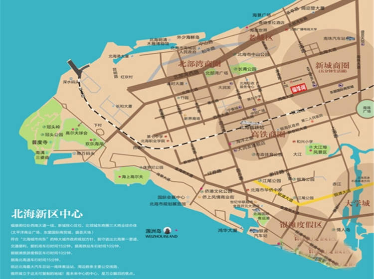 公交:乘坐8路、12路、15路在板桥站下车即看到该项目。 驾车:5分钟可到金癸市场(北海最大农贸批发市场),10分钟可到两大城区的两个大润发超市,万达购物广场,北海高铁站、北海南珠客运站,15分钟可到银滩、北部湾广场或北海客运港,25分钟可到北海福成机场。