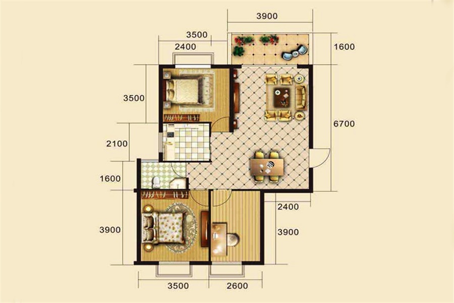 3室2厅2卫-A2B2户型(三室二厅111.75㎡)