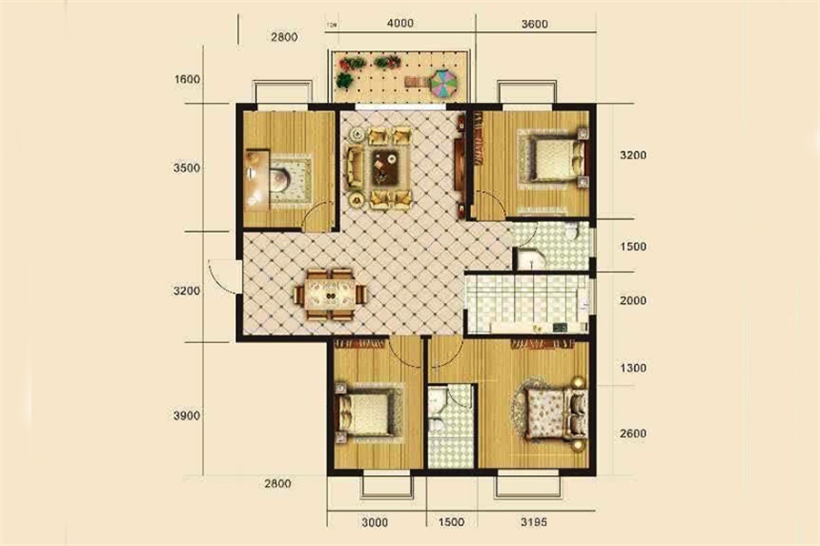 4室2厅2卫-B5户型(四室二厅126.34㎡)