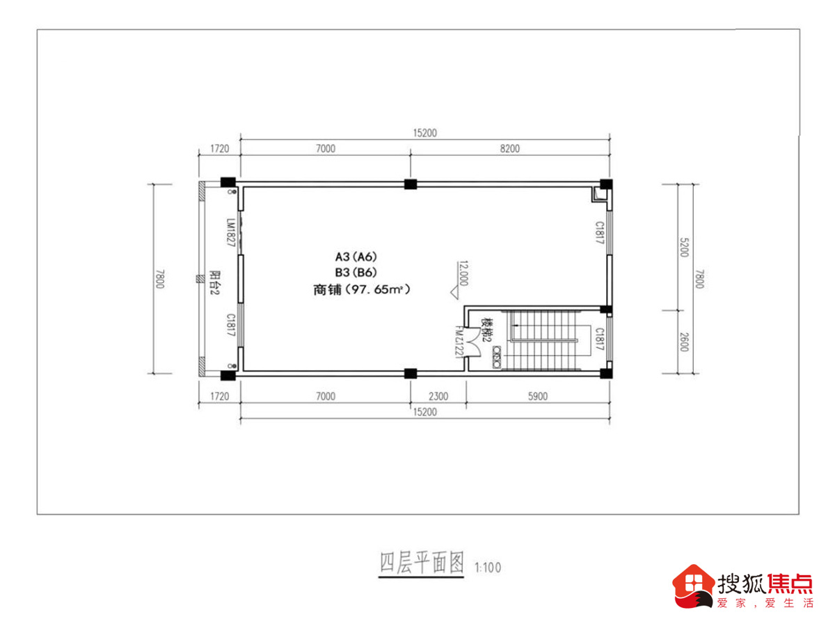 1室1厅1卫-商铺A3B3A6B6四层平面图