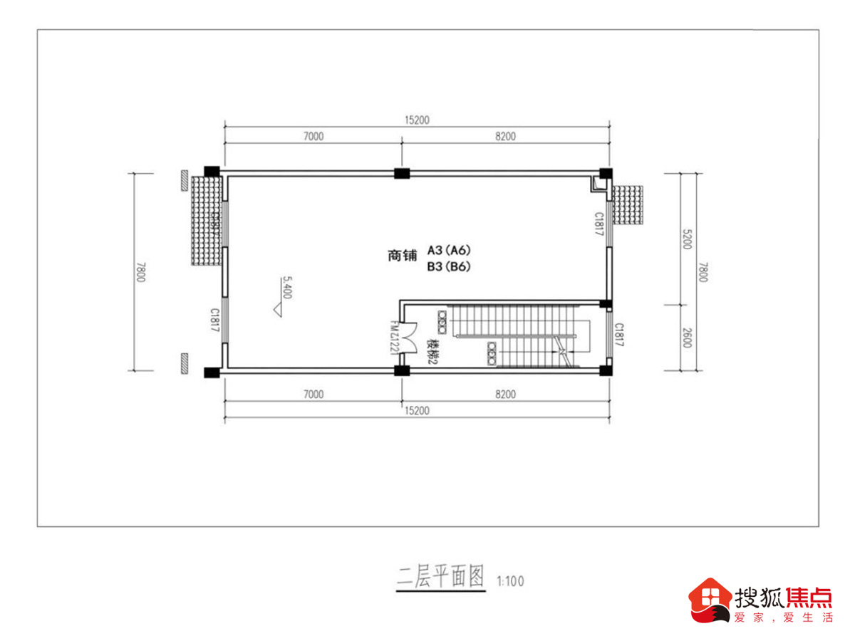 1室1厅1卫-商铺A3B3A6B6二层平面图