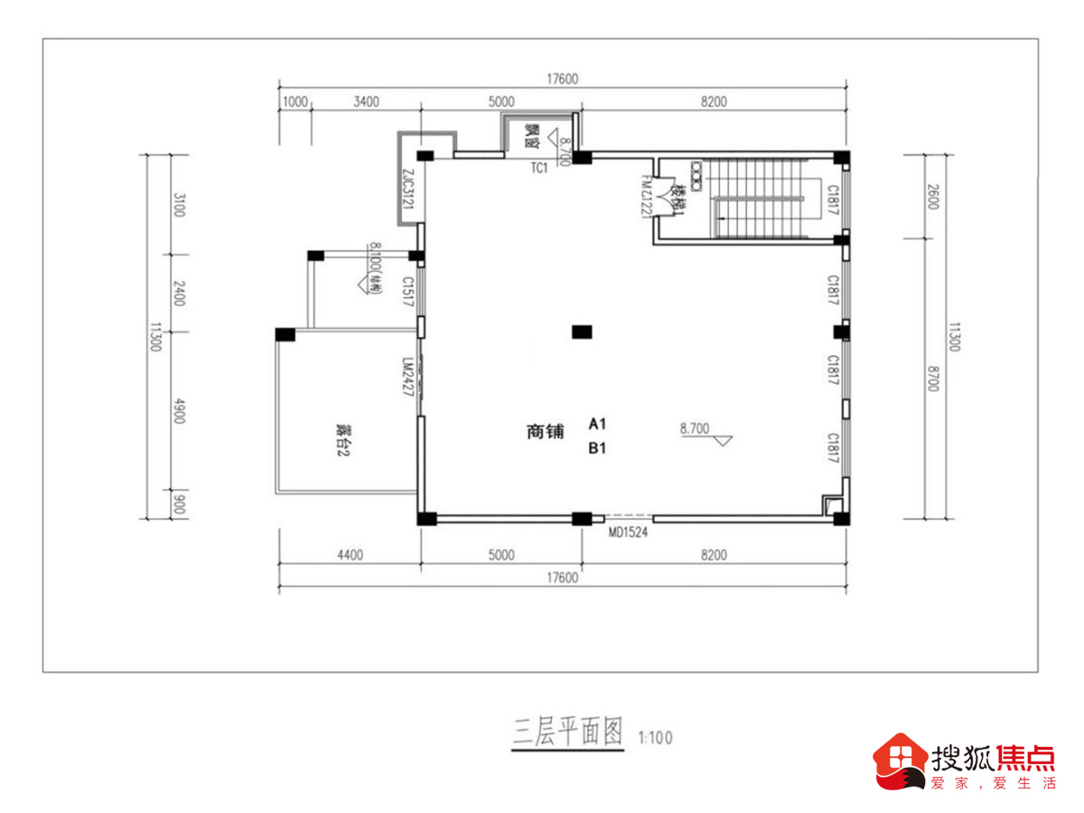 1室1厅1卫-商铺A1B1三层 户型平面图