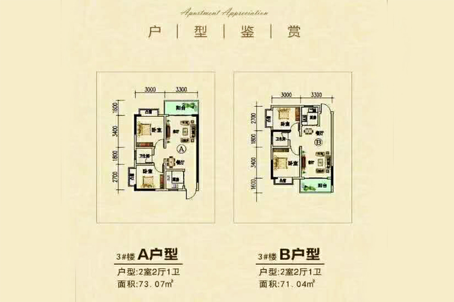 2室2厅1卫-3#A/B户型二室二厅73.07㎡