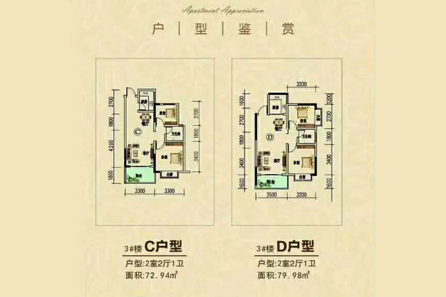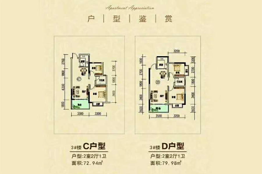2室2厅1卫-3#C/D户型二室二厅72.94㎡