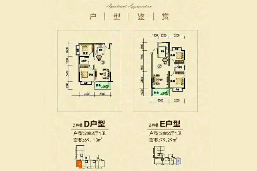 2室2厅1卫-2#D/E户型二室二厅79.29㎡