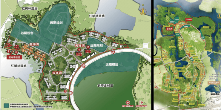 项目配建:红树林湿地公园、红树湾医院、健康管理中心、星空营地、文体中心、运动公园、红树湾生态疗愈中心等20大配建;