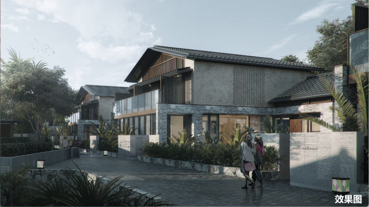 本着尊重和立足历史文脉的原则,延续700年的原始村落建筑肌理,在产品打造的时候提取古村落原始民居的建筑元素(如坡屋顶、硬山山墙、门斗、柱廊等)及建筑材料(如青瓦、空斗老砖、浅色涂料、木门窗等),通过建筑设计手法进行现代化演绎。