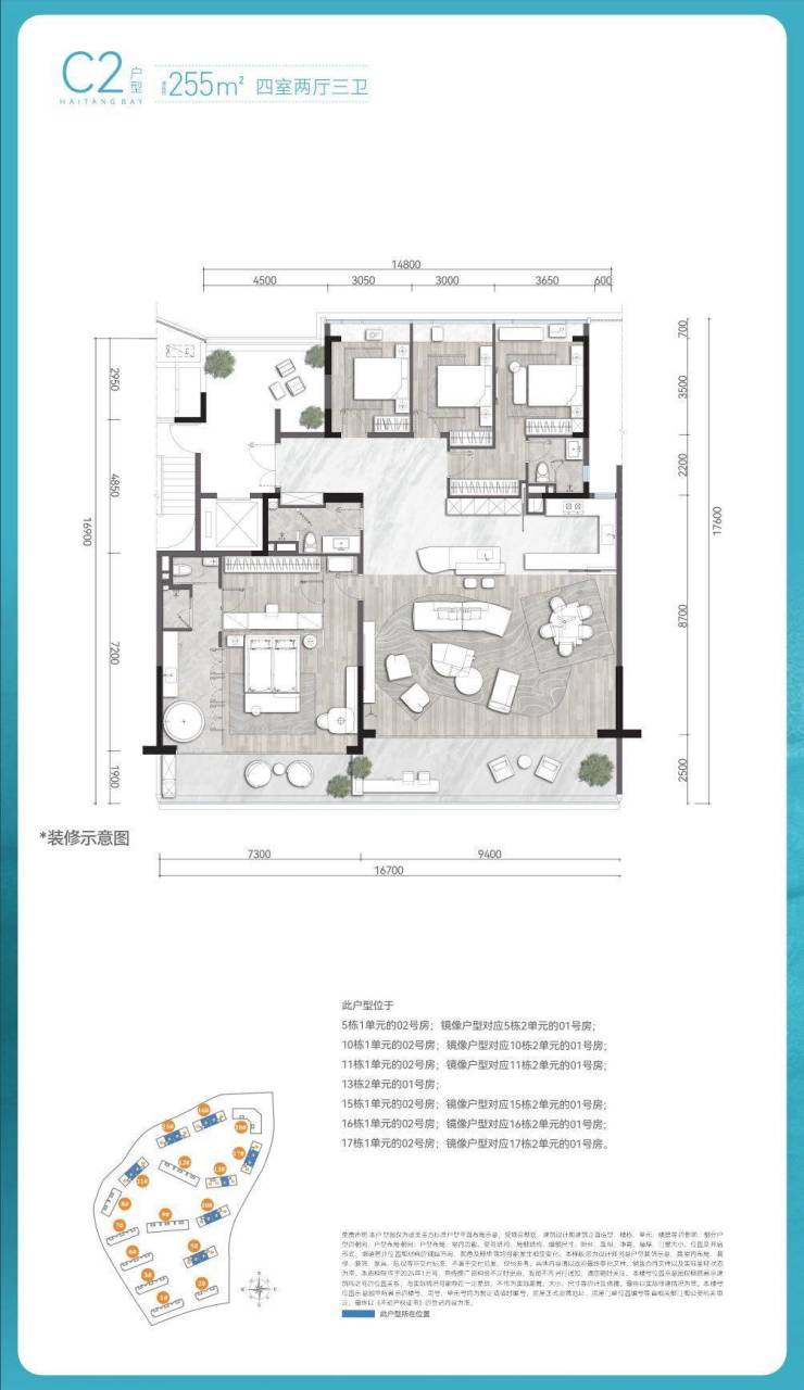 面积:建面约143-343㎡高端悦系奢邸3-4房