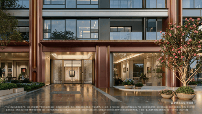 其次是外立面,项目溯源海派经典的ART DECO风骨,采用经典的三段式结构,整体布局讲究对称和秩序,横竖线条交织,体现出简约工整的现代美感。