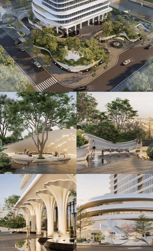 汲取世界纯定制超级游艇领域的领导者“斐帝星”游艇设计灵感,采用高性能铝板+全景LOW-E玻幕墙体系,打造流线型奢雅立面。