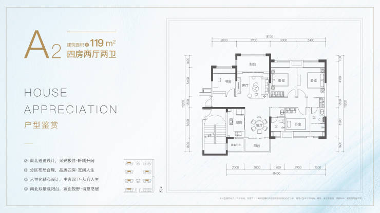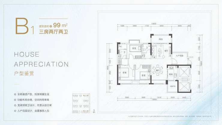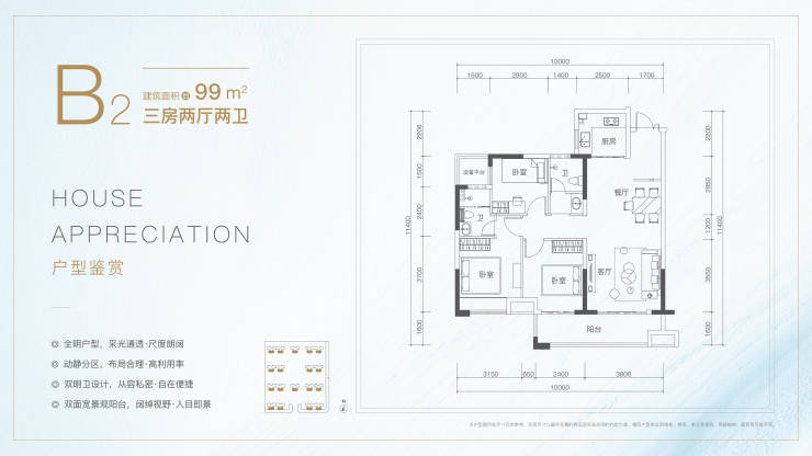 产品涵盖99-119㎡品质居所,两梯四户,99㎡三房配备2个卫生间,双阳台,超大赠送;119㎡四房轻松满足住房需求,刚需改善一步到位,且南北双阳台、全屋飘窗,得房率极高,是目前区域内性价比最高、户型最优异的安居产品。