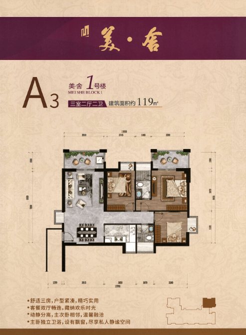 A3户型 三室两厅两卫+两阳台