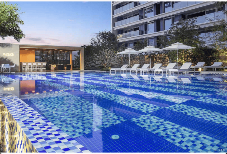 2. 傲踞海口湾芯,优享精粹资源:坐拥城市高品质人居板块和国贸、世贸双商圈,拥揽湾区秀美海岸线资源,将城市繁华万象和纯粹自然兼收并蓄。