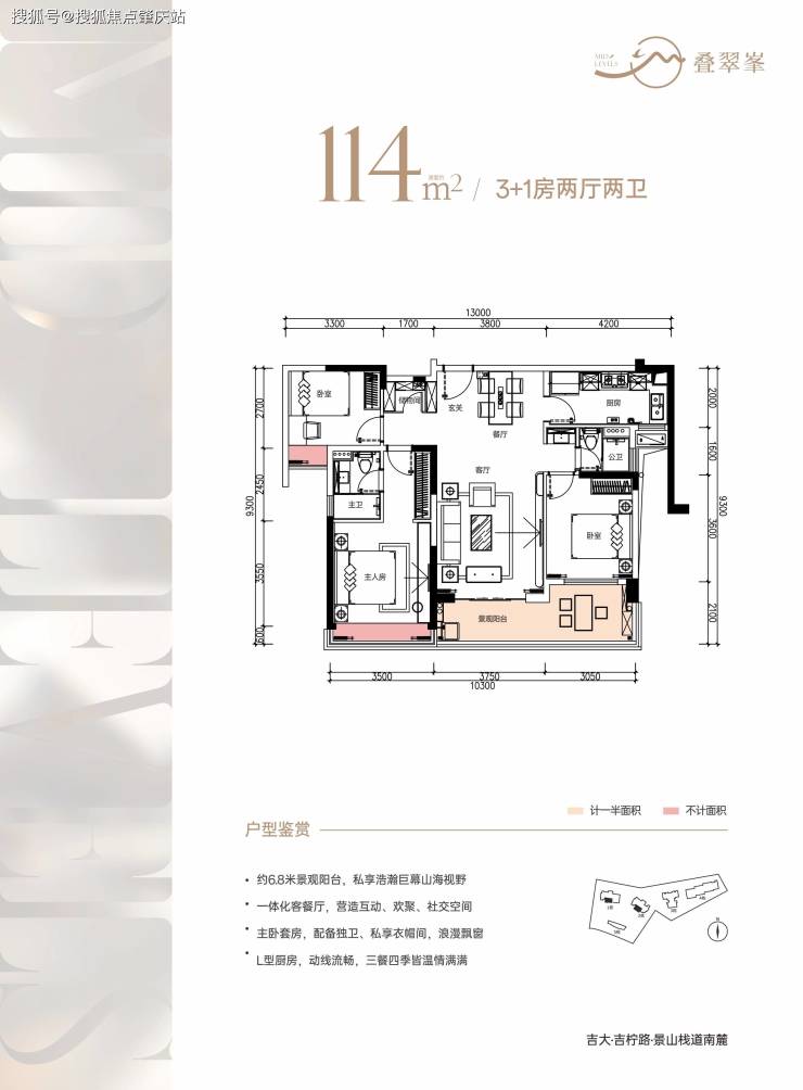城市中心罕见2.0容积率,纯粹豪宅规划尺度,营造疏阔的建筑空间。叠翠峯南北坐卧,藏风聚气,于半山高度,360°全无遮挡,推窗即远眺城市与山,前后千米无楼间距遮挡,定义半山顶豪物业典范。