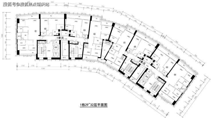 两梯四户,两个单元,平面图: