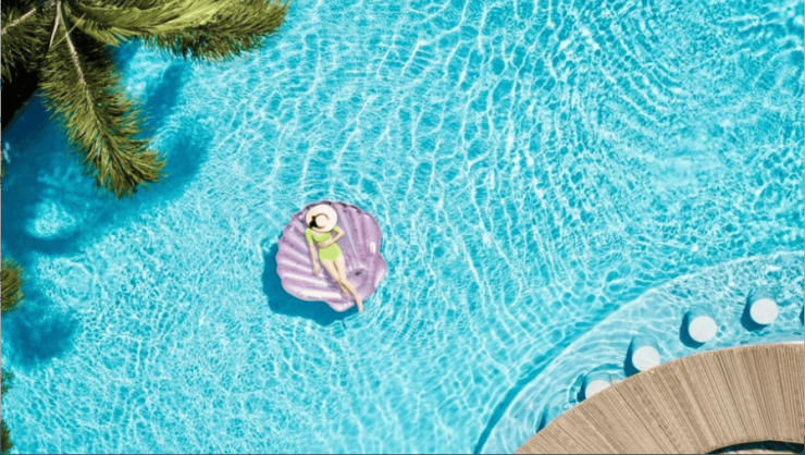 超长约30米泳道,搭配池底涌泉,层层涟漪,营造海浪波光粼粼的度假奢感。