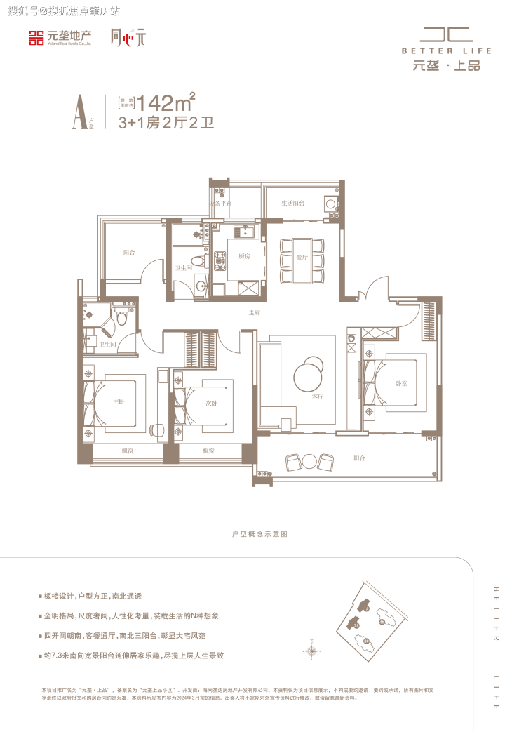 建筑设计:采用板楼布局,全明户型设计,保证了室内充足的采光和通风。跑道式大阳台设计,让业主可以更好地欣赏自然景观,也增加了室内空间的延伸感。