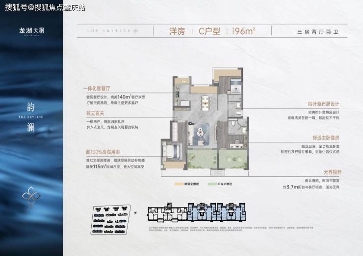 龙湖天澜,作为湖心新城首个新规后洋房社区,打造建面约85-144㎡奢境会所洋房,实用率超100%,刷新珠海户型标杆。