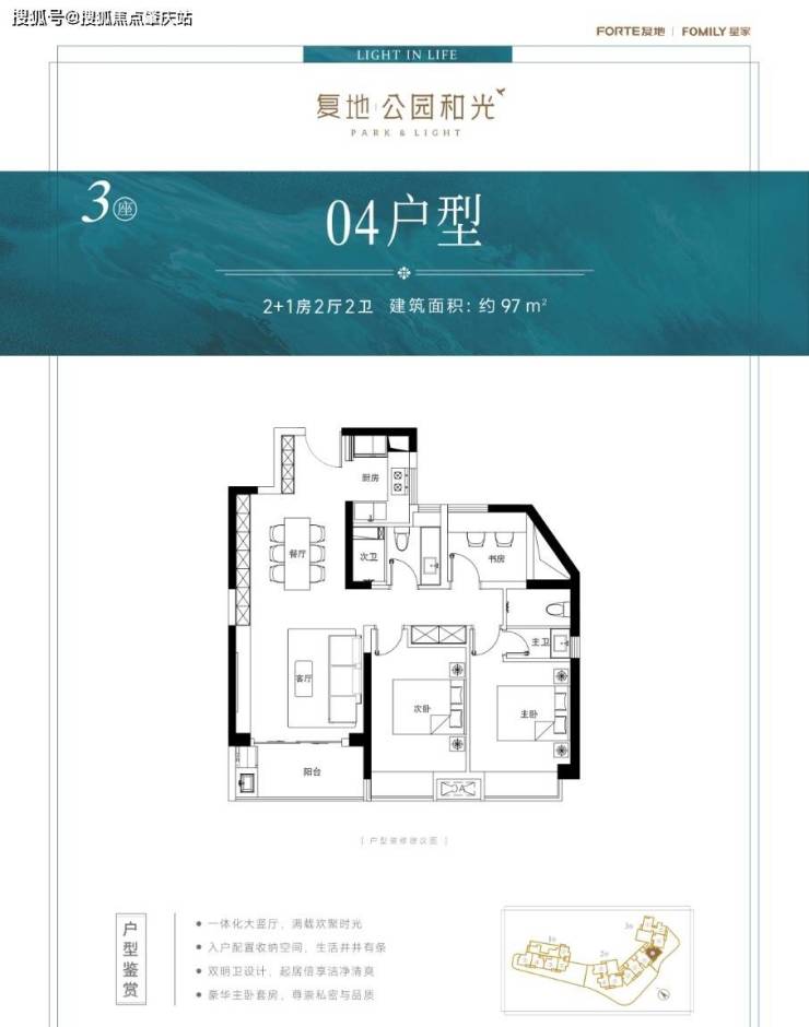五、热销户型约95~120m² 3房:从实用到舒适型需求全覆盖,可满足不同家庭生命周期需求约75m² 2房:片区稀缺南向+双阳台小户型设计,极具收藏和投资价值