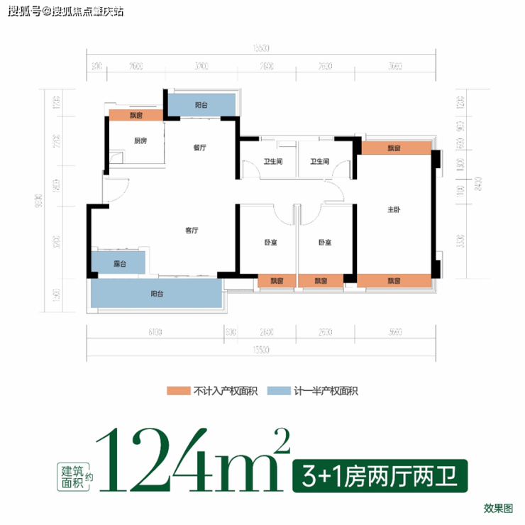 主卧双飘窗+次卧等面宽飘窗,全赠送高拓空间