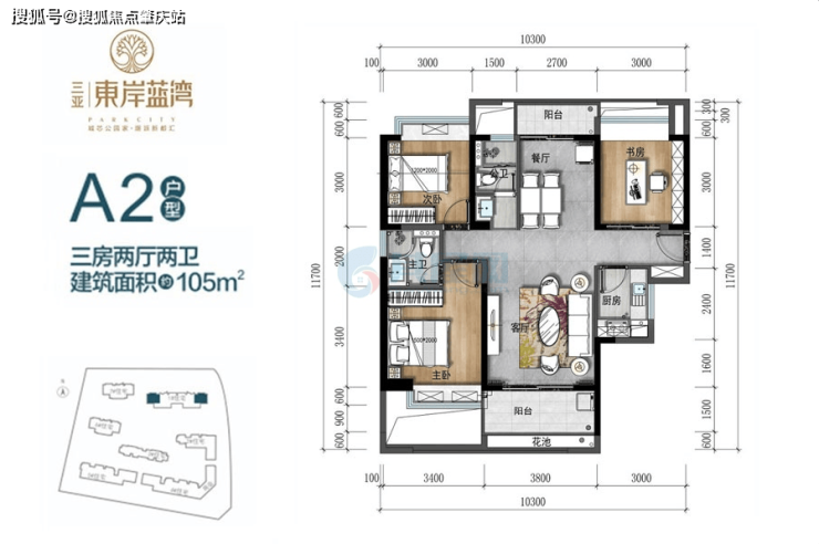 A2户型:105㎡ 阳光三房