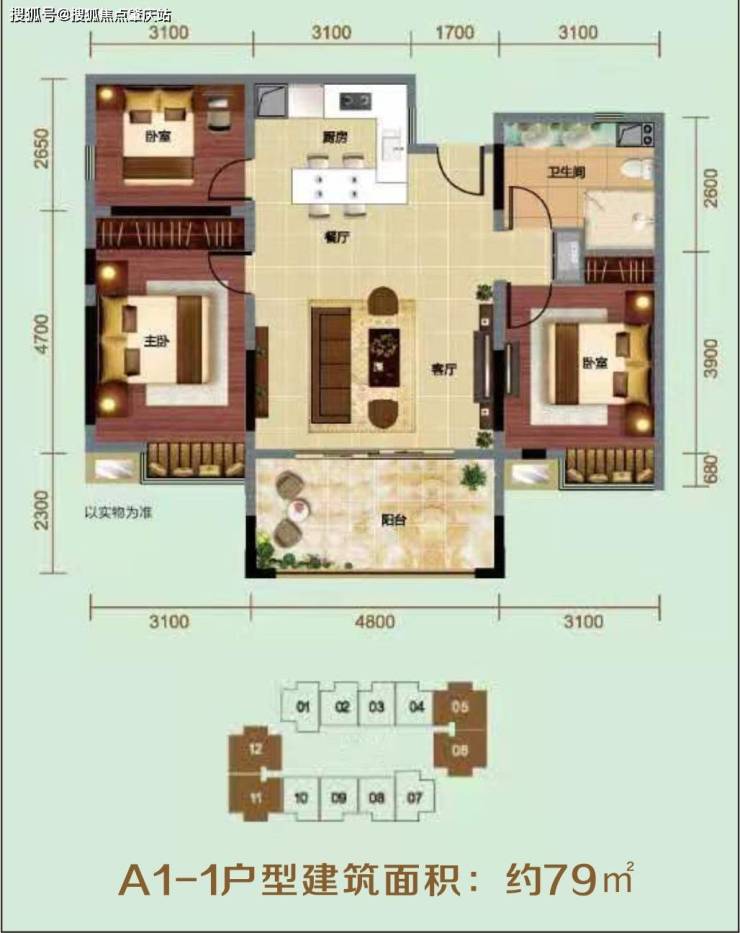 ⭐A1-1户型建筑面积:约79㎡
