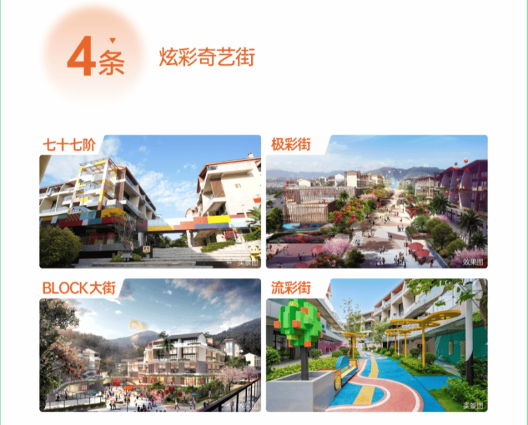 小镇通过积木岛、梦想城堡、云端、红色之恋、蓝色之恋、三位树屋、水下隐室、倒梦空间八大奇异建筑,汇聚顶尖品牌,打造科技馆、儿童乐园、婚恋主题馆、心灵修养馆等多元业态于一体的商业美学空间,是集网红打卡与商业场景并存的心地标。