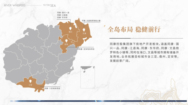 潮起海之南,澎湃新发展,创迎新时代。为积极响应海南岛建设,多位地产上市公司高管于2019年联合创办同康品牌。是一个集房地产开发运营、金融投资管理、第三方金融服务、物业运营管理、建筑材料、装饰工程等多元业务板块融合发展的集团运营平台,以经验丰富的操盘团队,积极赋能城市新生。