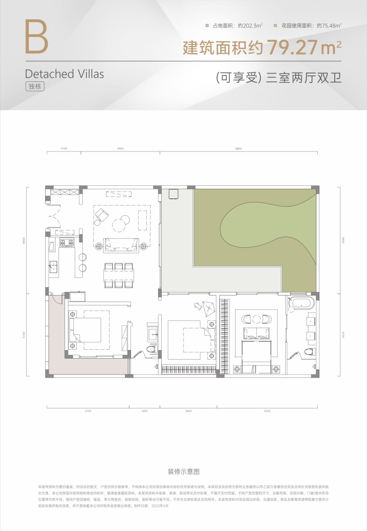 B户型:建面79平米 占地202平