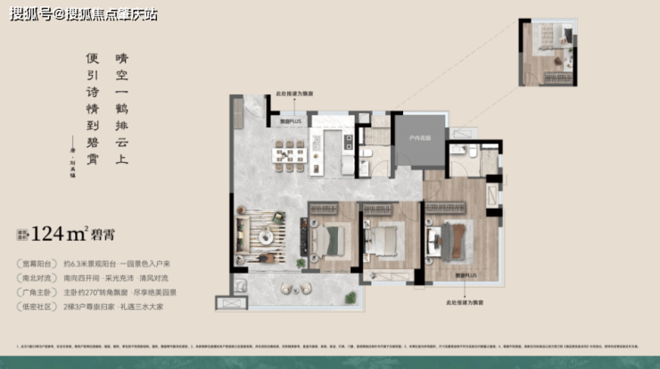 约6.3米超大南阳台 | 四开间朝南 |270°转角飘窗