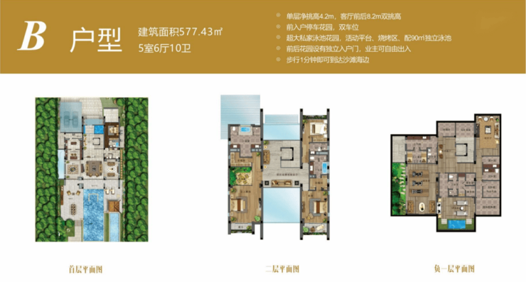 建筑面积约:422㎡ - 730㎡ 国岸上争藏别墅,只为少数派专属量身定制。