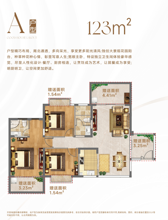 •产品户型:104/123㎡三房两厅
