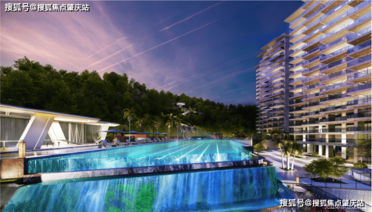 水主题元素贯穿整个园区景观中庭,配合精心设计布置的半山镜面无边际泳池,于畅游中体会山海一色,悠然于心。同时配置儿童嬉戏区、满足成人与孩童的多样化需求,犹如点缀海面上的颗颗晶钻,畅享365天假日生活。