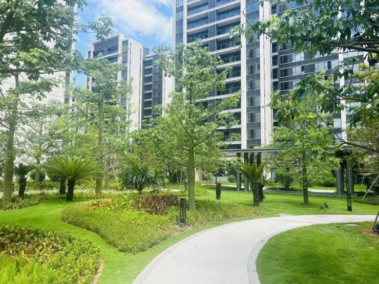 新加坡风格园林,以两轴一心多组团的规划布局,通过轴线设计营造出对称与秩序感。采用成品全冠移栽技术,力求“春有花、夏有荫、秋有果”,打造“城市花园”与“艺术空间”的双重居住体验。