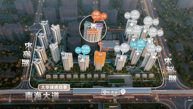 大华·锦绣四季,西海岸销冠红盘!择址西海岸中轴发展热土之上,规划16栋高层及12栋叠墅,匠心建筑面积约103—129㎡臻装现房,以品质人居范本,兑现城市菁英生活向往。
